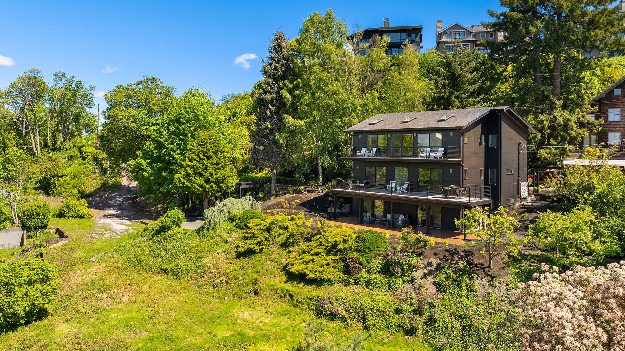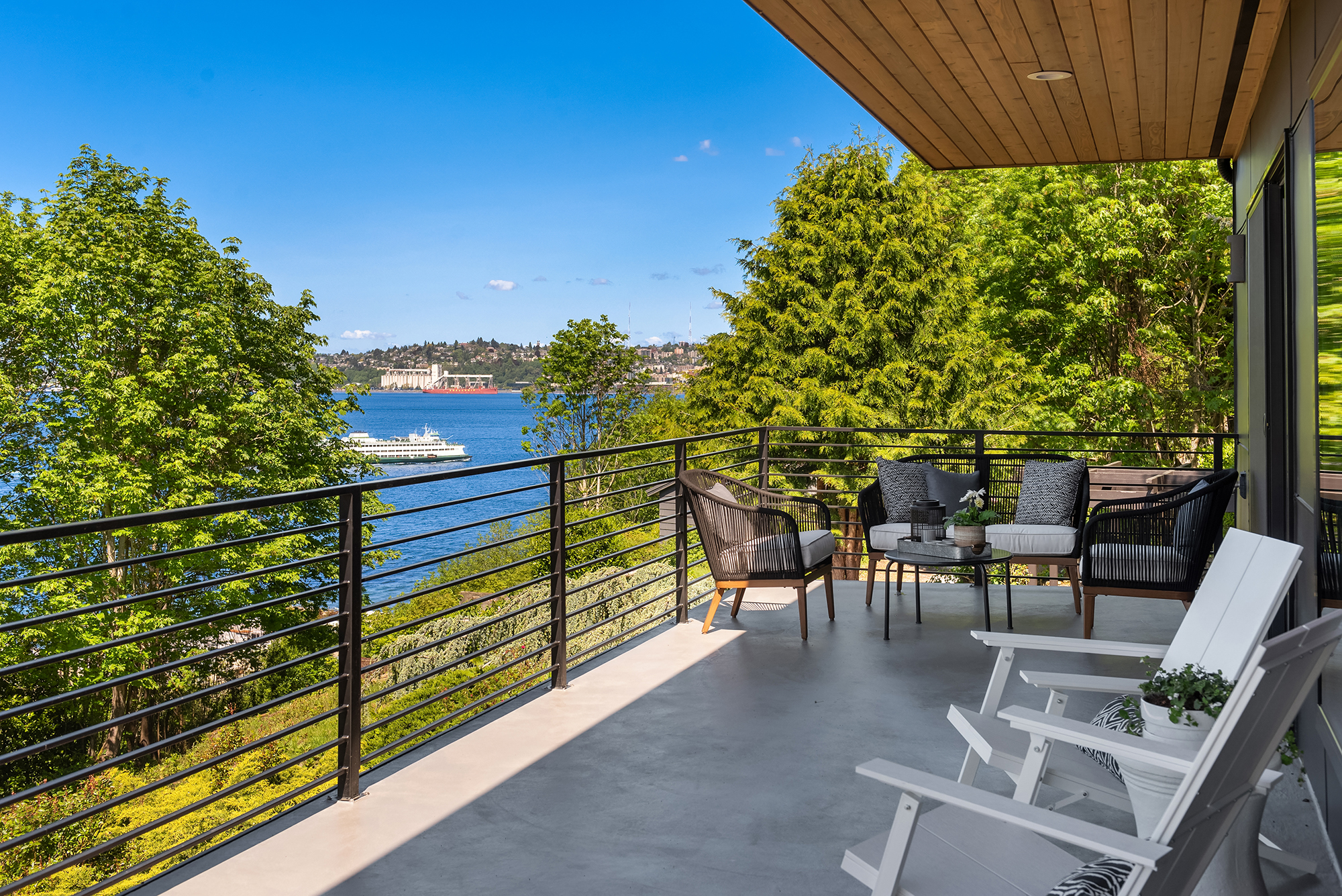 We love this location for its privacy and views. While Seattle can boast a lot of view property, it is rare to have the combination of privacy, green forest in the foreground, blue sea in the middle ground, and snow-capped mountains in the background tinged with vivd summer sunsets and winter morning Alpenglow. Not bad for urban living to sit on the deck with a cup of coffee watching the sailboats, ferries, barges and tugs. Walk across the street to Hamilton Viewpoint Park and you have the best Cityscape view of Seattle and the Cascade Mountains to the east, day and night.We love this location for easy access to the best commute in town — the public water taxi— a walk-on ferry that skims you across Elliott Bay to downtown in 12 scenic, stress-free minutes. You can just walk downhill to the water taxi or hop on the shuttle that passes by the end of the Lane. Headed to the airport? A 20 minute drive. The same short walk downhill also gives you access to the walk/bike path to beaches and restaurants.