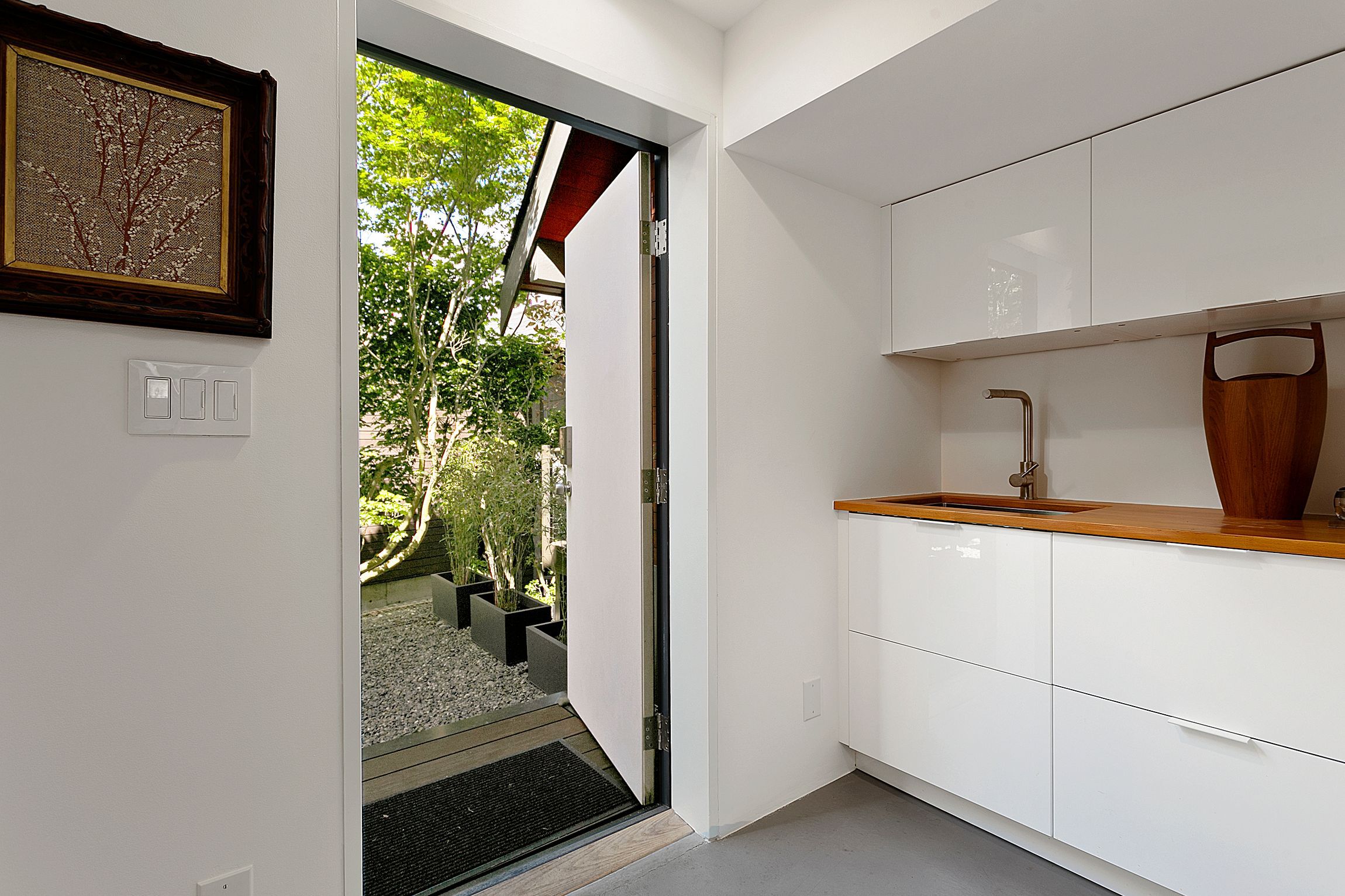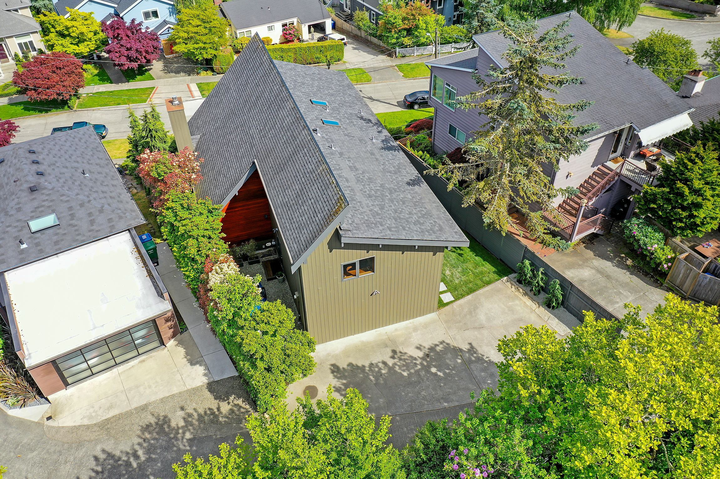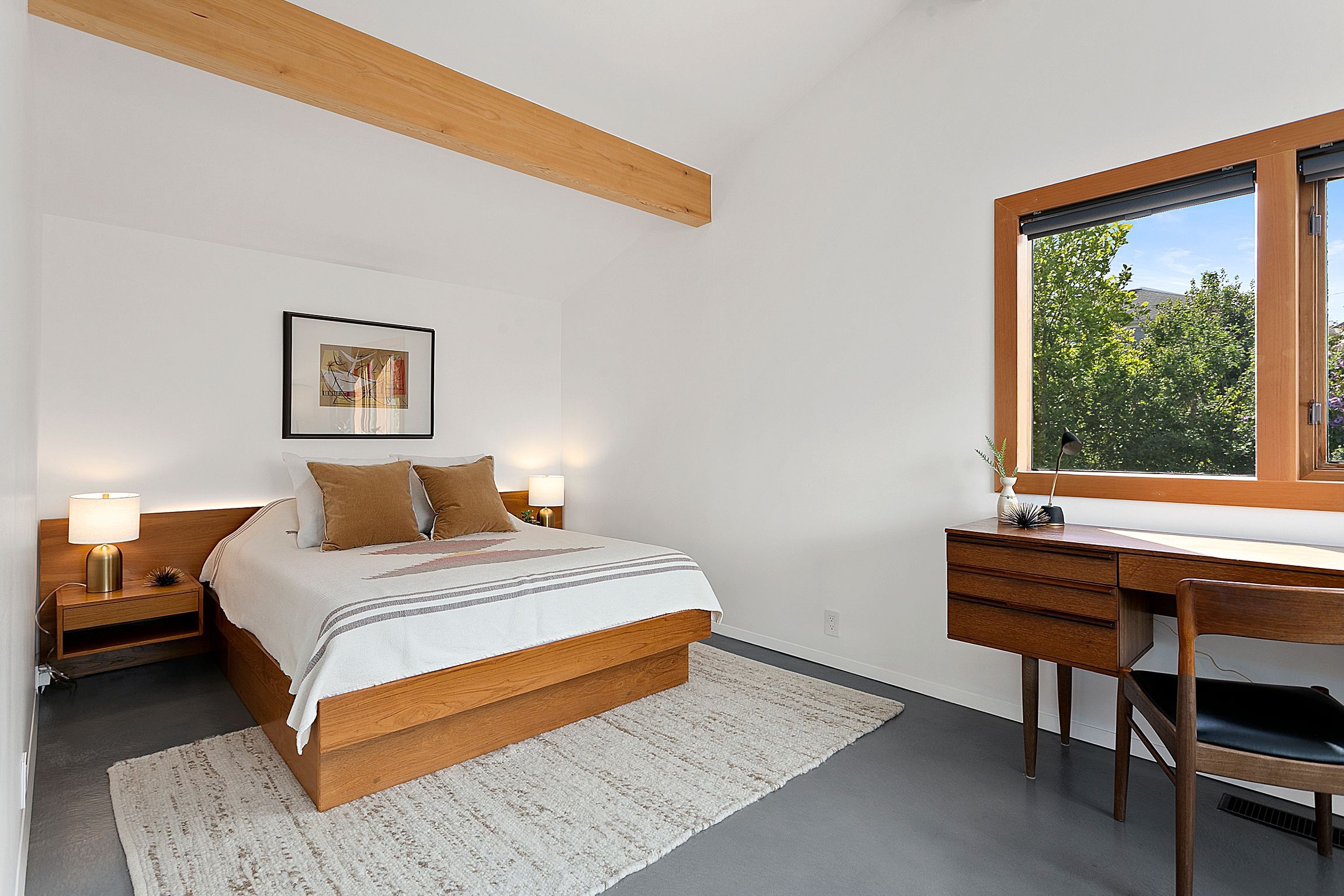 We discovered this NW modern gem in 2006. Amidst the architectural diversity of the neighborhood, its period Northwest style and design was rare. We both adored these homes, built with organic materials and colors, cathedral ceilings and walls of glass intended to celebrate the natural landscape and climate.