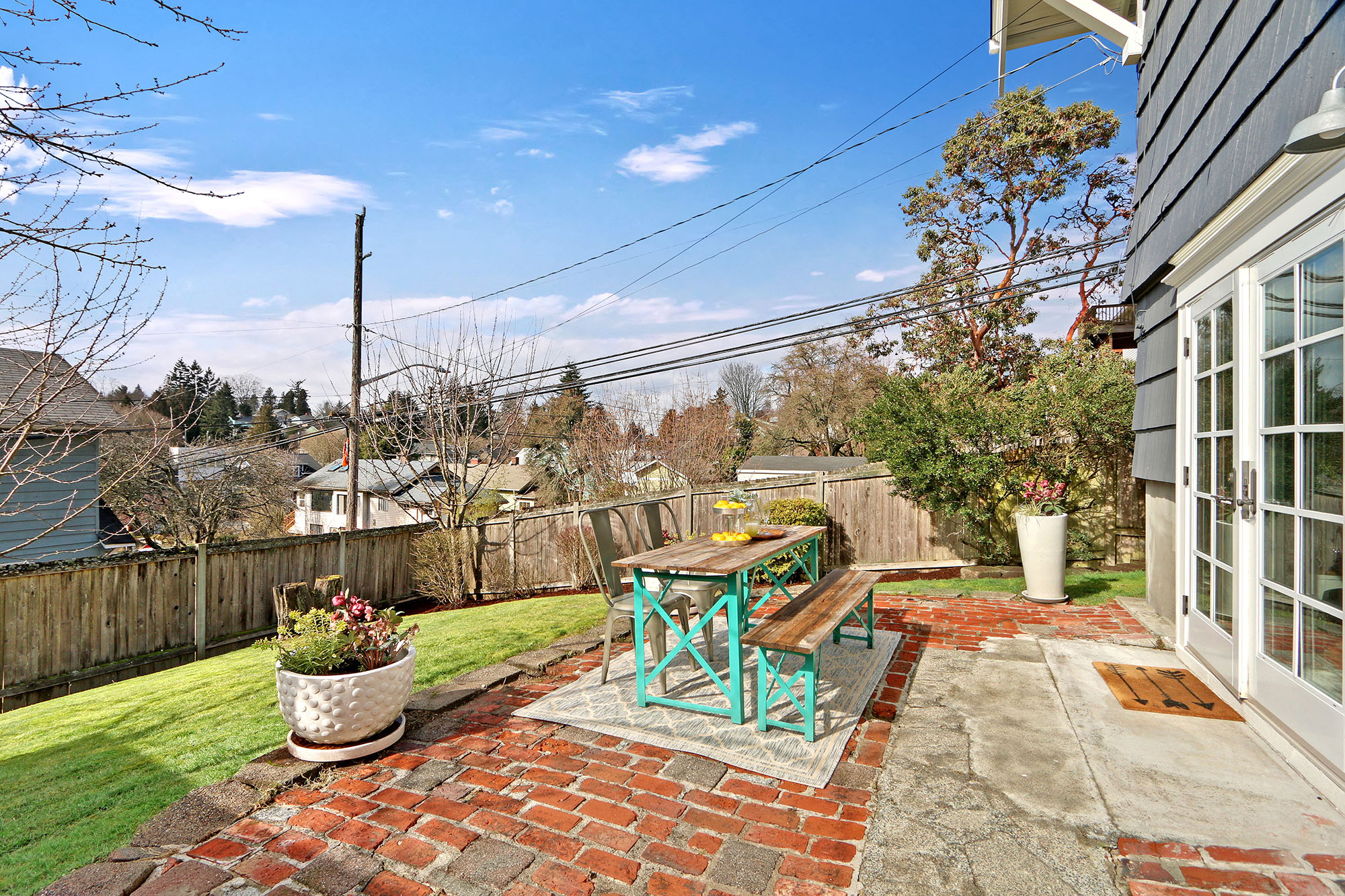 French doors to fenced yard