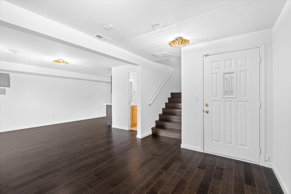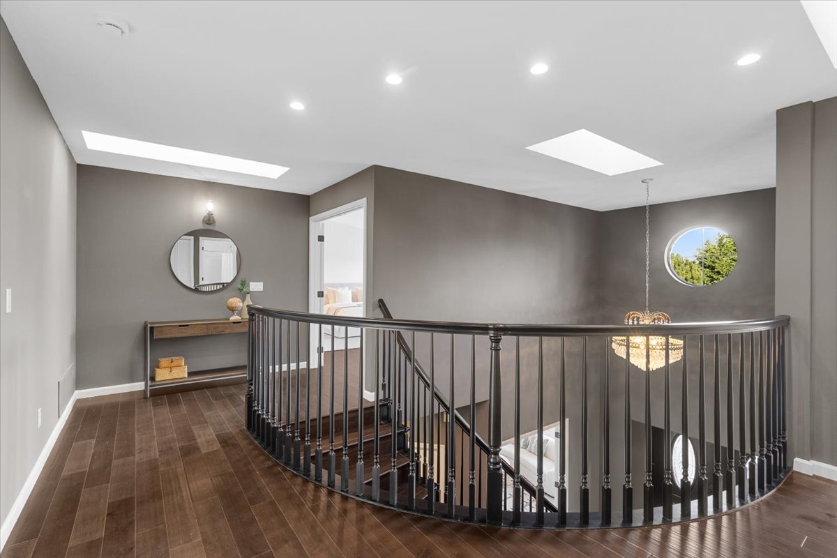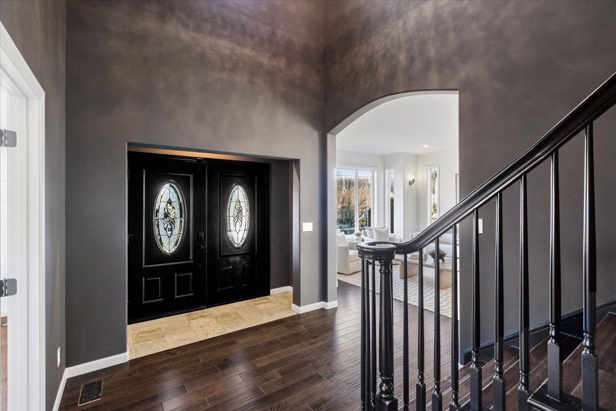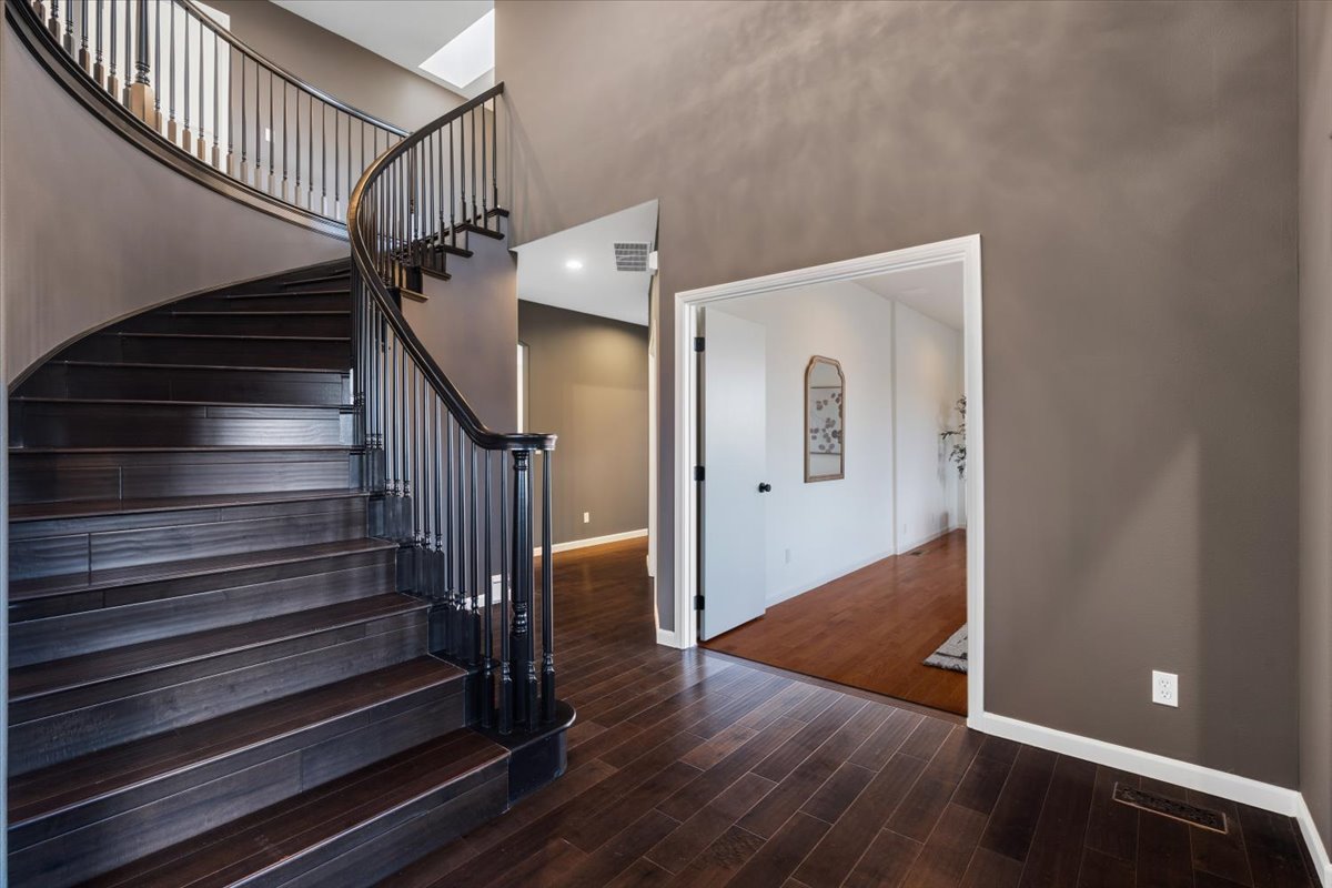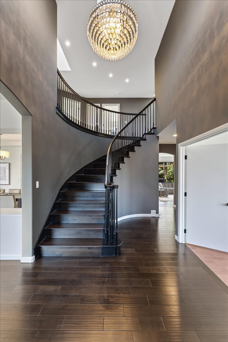• Vaulted ceilings and curved stairway entry